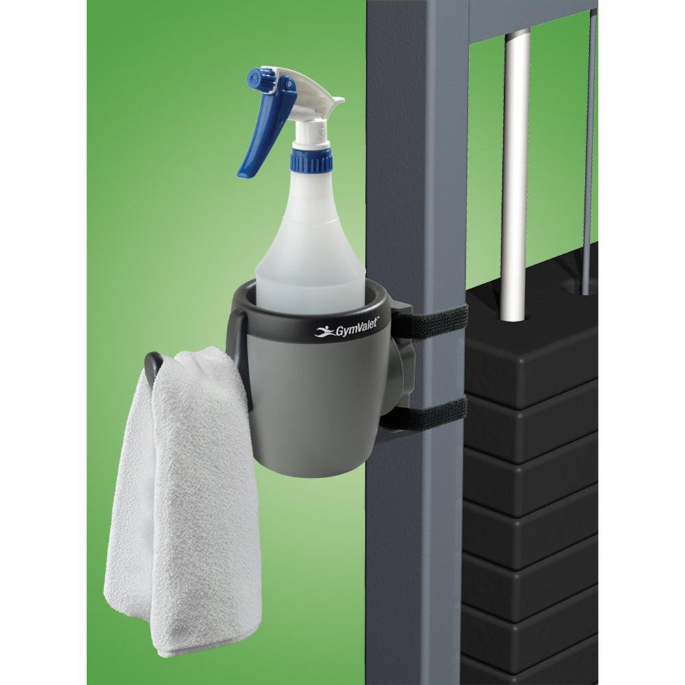 GymValet® is the perfect holder for sanitizing spray bottles and towels. It easily attaches directly to all strength training and cardio equipment. With the GymValet, equipment sanitizing supplies are precisely where they need to be—right at every exercisers’ fingertips. The GymValet has been helping fitness centers around the world keep a clean environment since 2006.