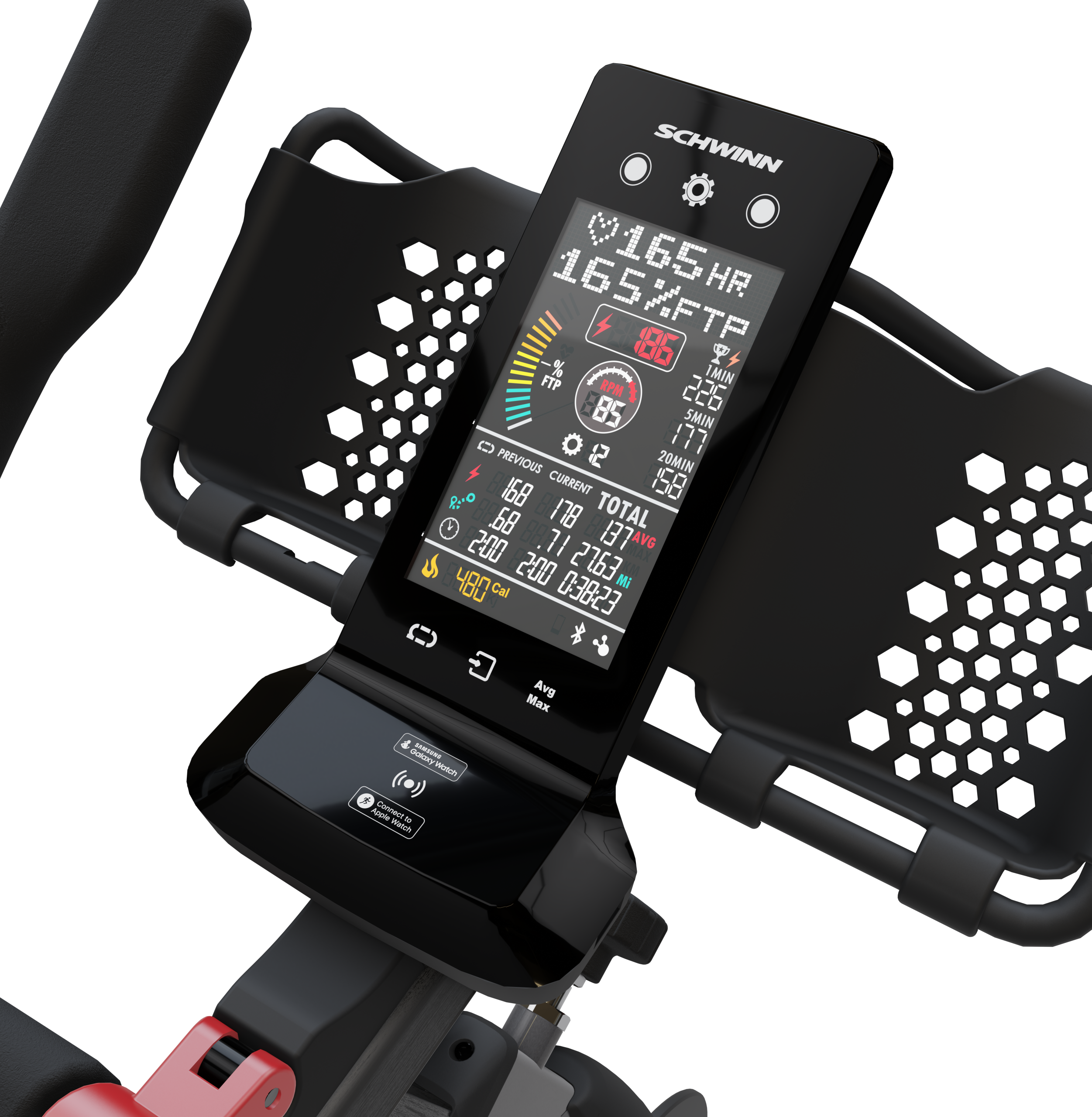 Instructors will love uniting a class with color, allowing members at both ends of the fitness spectrum to ride side by side with the same intensity and sense of accomplishment. Schwinn’s broad-based approach reduces the traditional number of Power and Heart Rate training zones to 4 to align with ratings of perceived exertion, creating more accessible and attainable programming for instructors and members alike. Zone-colored LED lights next to the flywheel display each member’s intensity, encouraging the class to Ride As One.