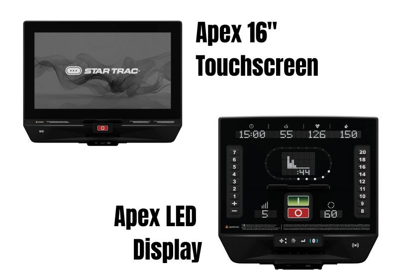Built with the Morse Taper bottom bracket and pedal system, the bike ensures long-lasting stability in high-traffic fitness environments. Dual-platform pedals, ergonomic armrests, and signature personal fans enhance comfort and engagement. Choose between Apex 16″ HD Touch or Apex LED Displays for interactive workouts, featuring onboard HIIT programming, wireless device mirroring, and apps like RunTV and PlutoTV.