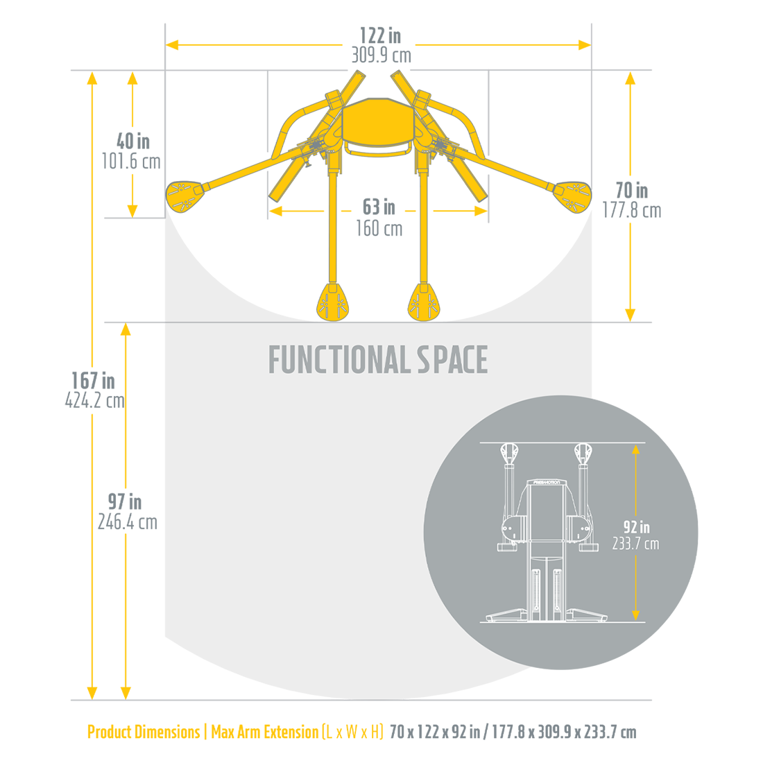 Cable length allows for full flexion and extension. 97 in / 246.4 cm per side.