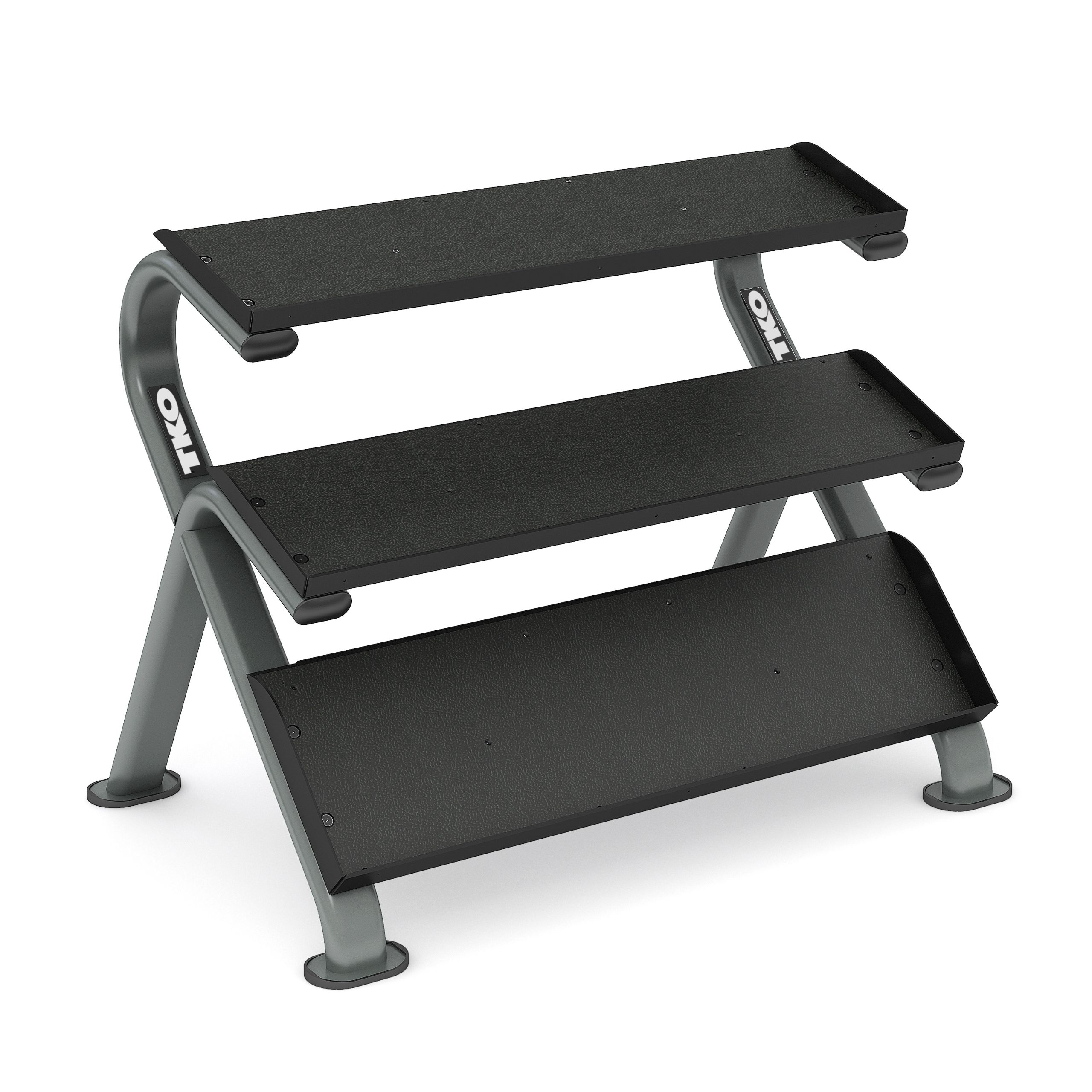 The TKO Storage Solution racks provides a variety of options to clean up your facility. This 3-Tier rack is perfect for a 10 pair ( 5 – 50 lbs ) set, and can even fit a couple of 7.5 and 12.5 dumbbells. The flat tray design ensures fingers don’t get pinched when loading and offloading.